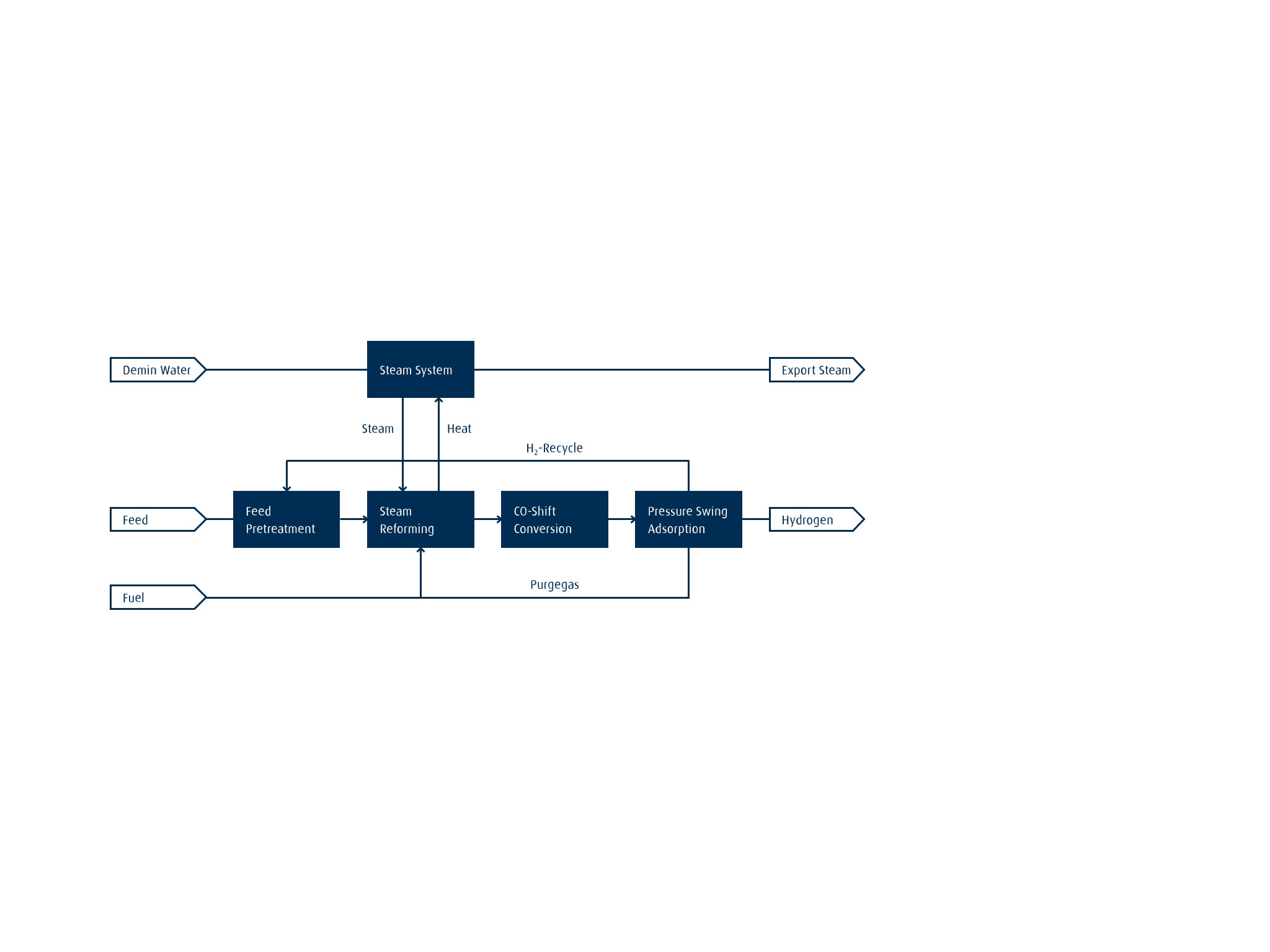 Conventional H2 can be produced from all kinds of hydrocarbon feedstocks via SMR or POX. It can also be obtained by the conversion of CO, followed by a PSA (purification) process or by the recovery and purification of refinery purge gases.